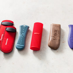 Design mattered, too. Three of the silicone covers had bumps or ridges on their tops and bottoms, in theory to help keep our hands a little higher off the hot metal there; unfortunately, they lacked similar bumps on the sides, so our hands still got hot pretty fast. (The fourth silicone model had no bumps at all, its smooth surface providing a fairly thin buffer against the heat.)